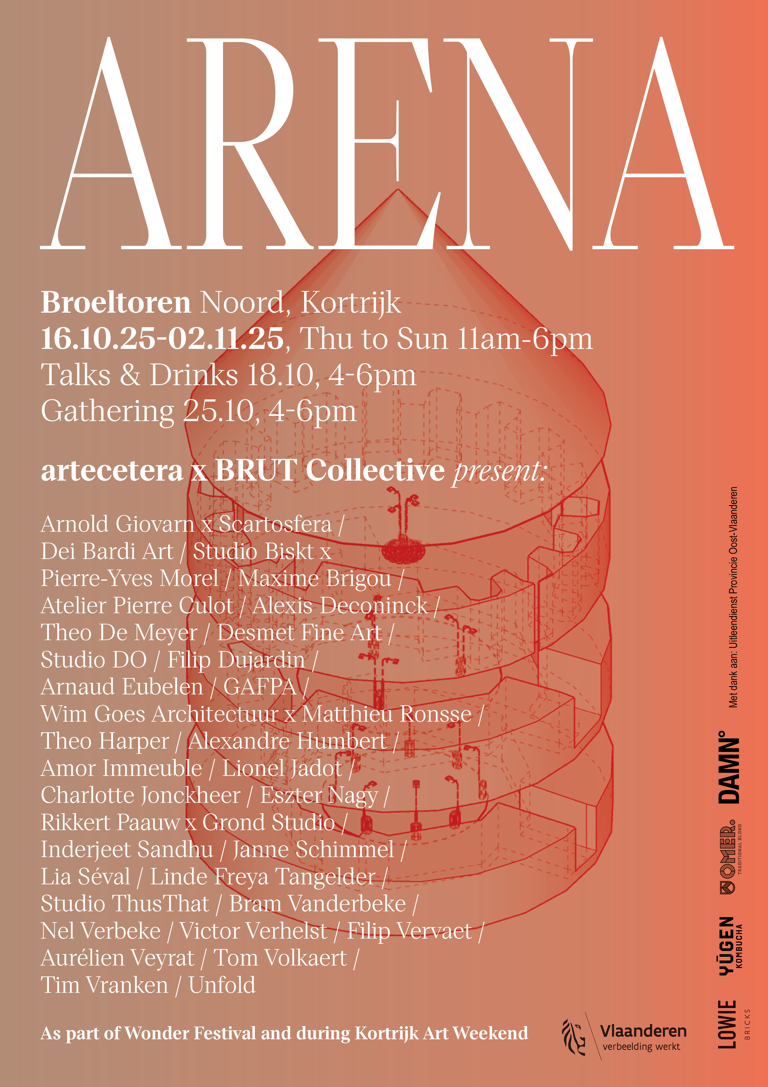 Together with BRUT Collective, artecetera transforms the Broel Tower into a layered arena where the creations of more than thirty (inter)national designers, architects, and artists enter into dialogue with one another. Existing structures are questioned, unexpected connections are made, and societal themes such as urbanization, heritage, and collectivity are examined.